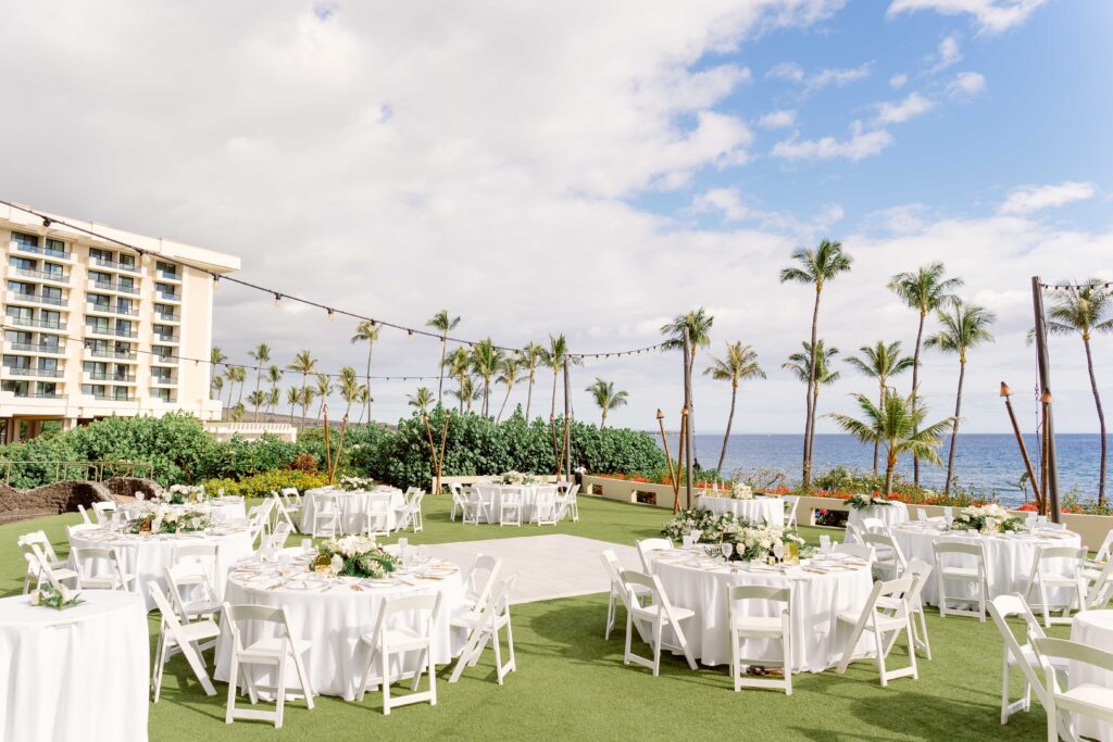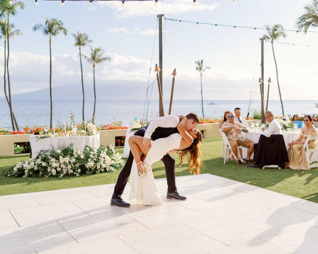 For the reception, they transformed the outdoor space with string lights, lush flowers, and personal touches that made it feel so them. The Hyatt Regency Maui is super versatile, and they totally nailed the vibe—elegant, tropical, and a little bit of magic everywhere you looked.
