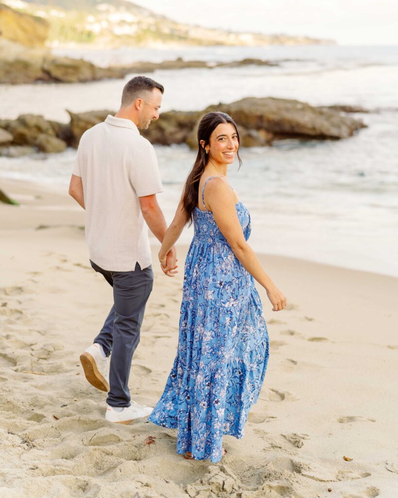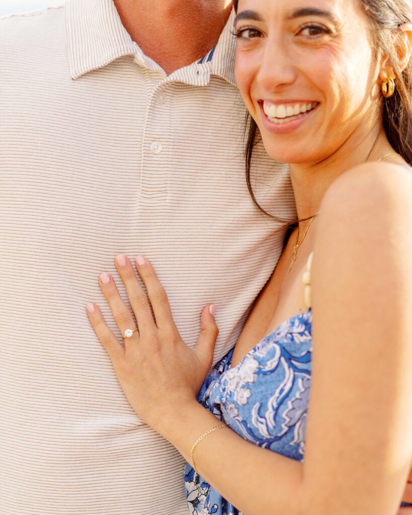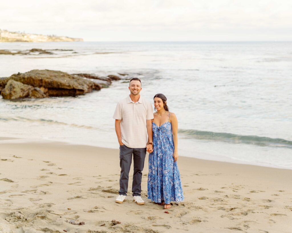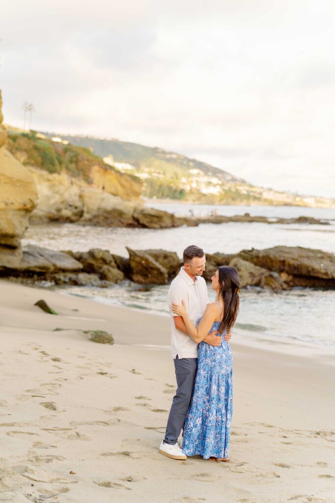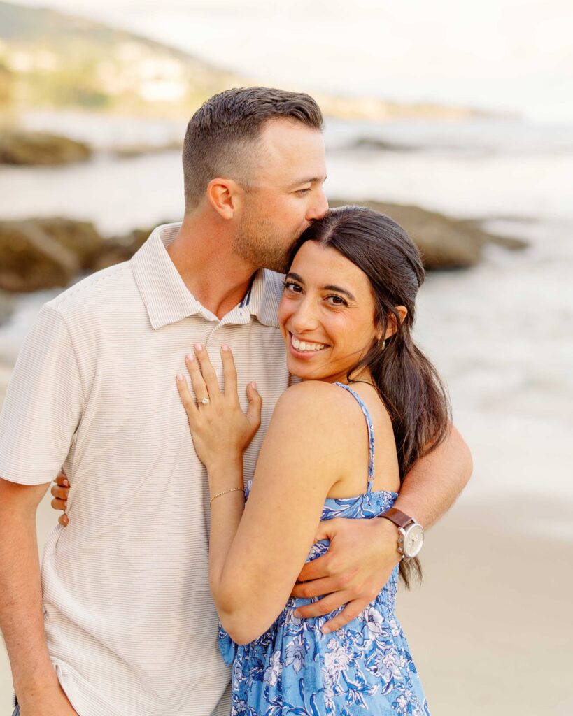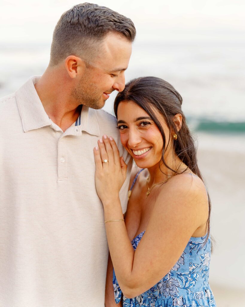 The joy on Mari’s face when Ryan got down on one knee was priceless. Her enthusiastic “yes” was met with cheers from their families, who were watching from a distance. After the proposal, we took a moment to capture the couple’s happiness with a portrait session on the sandy shores of Laguna Beach. The golden hour light was perfect, highlighting their love and the stunning coastal scenery. As a Laguna Beach photographer, capturing such genuine moments is always a joy.