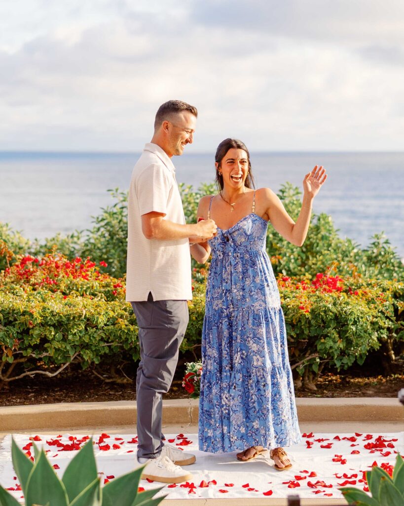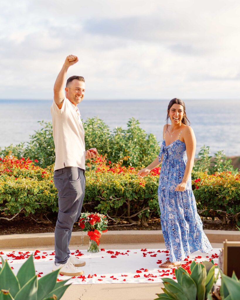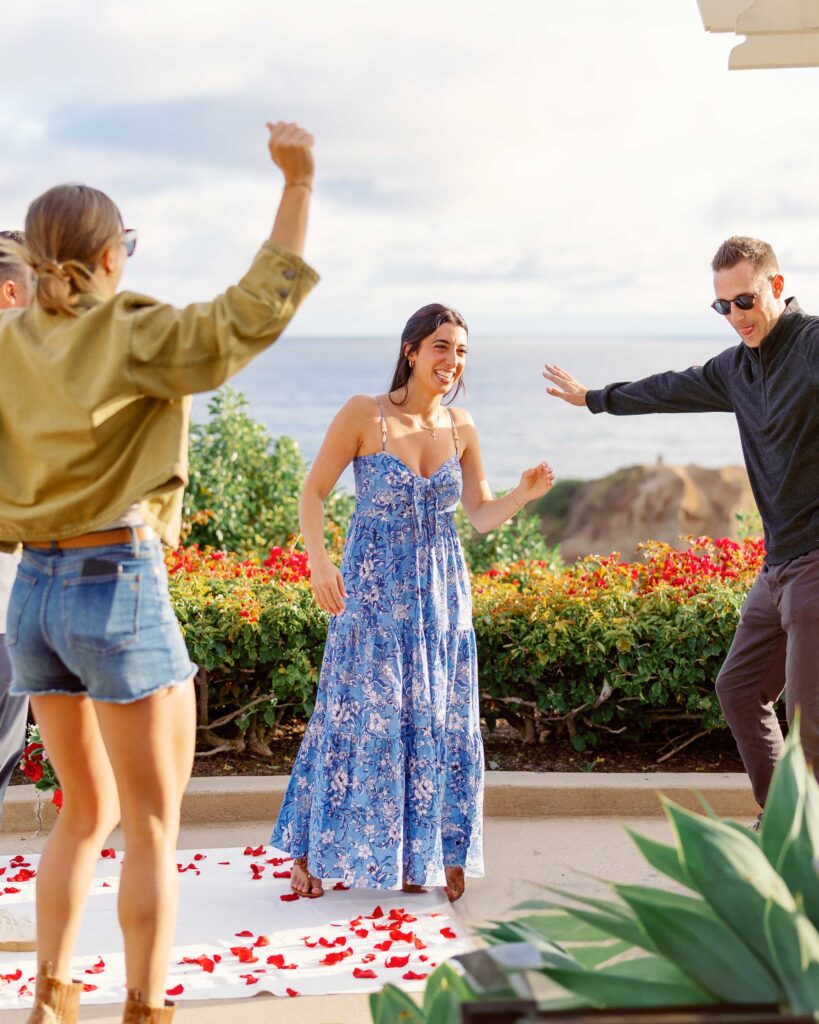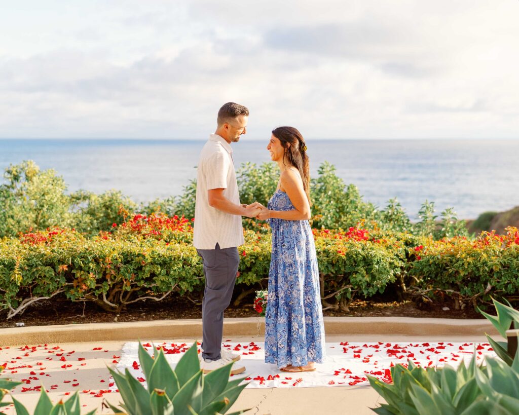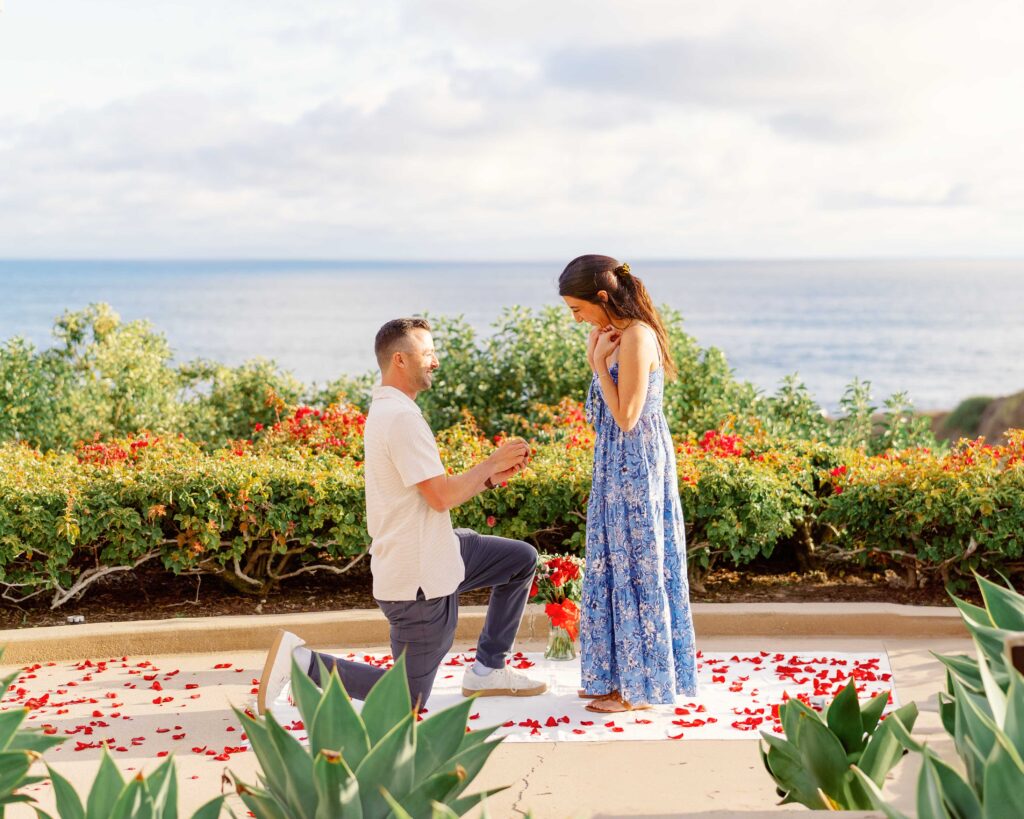As a Laguna Beach photographer, I recently had the honor of capturing Ryan’s surprise proposal to his girlfriend, Mari, at the breathtaking Montage Laguna Beach. This special moment was meticulously planned, with the help of their families, so cute!