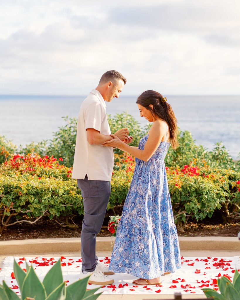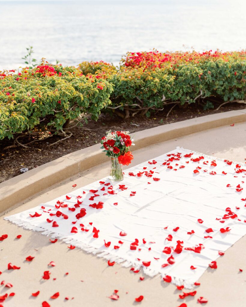 Ryan reached out to me with a heartfelt plan to surprise Mari. Their families laid down red rose petals and kept the spot clear, creating an intimate and romantic setting. Mari thought they were heading to a family dinner, but when they arrived, Ryan’s proposal took her by complete surprise.