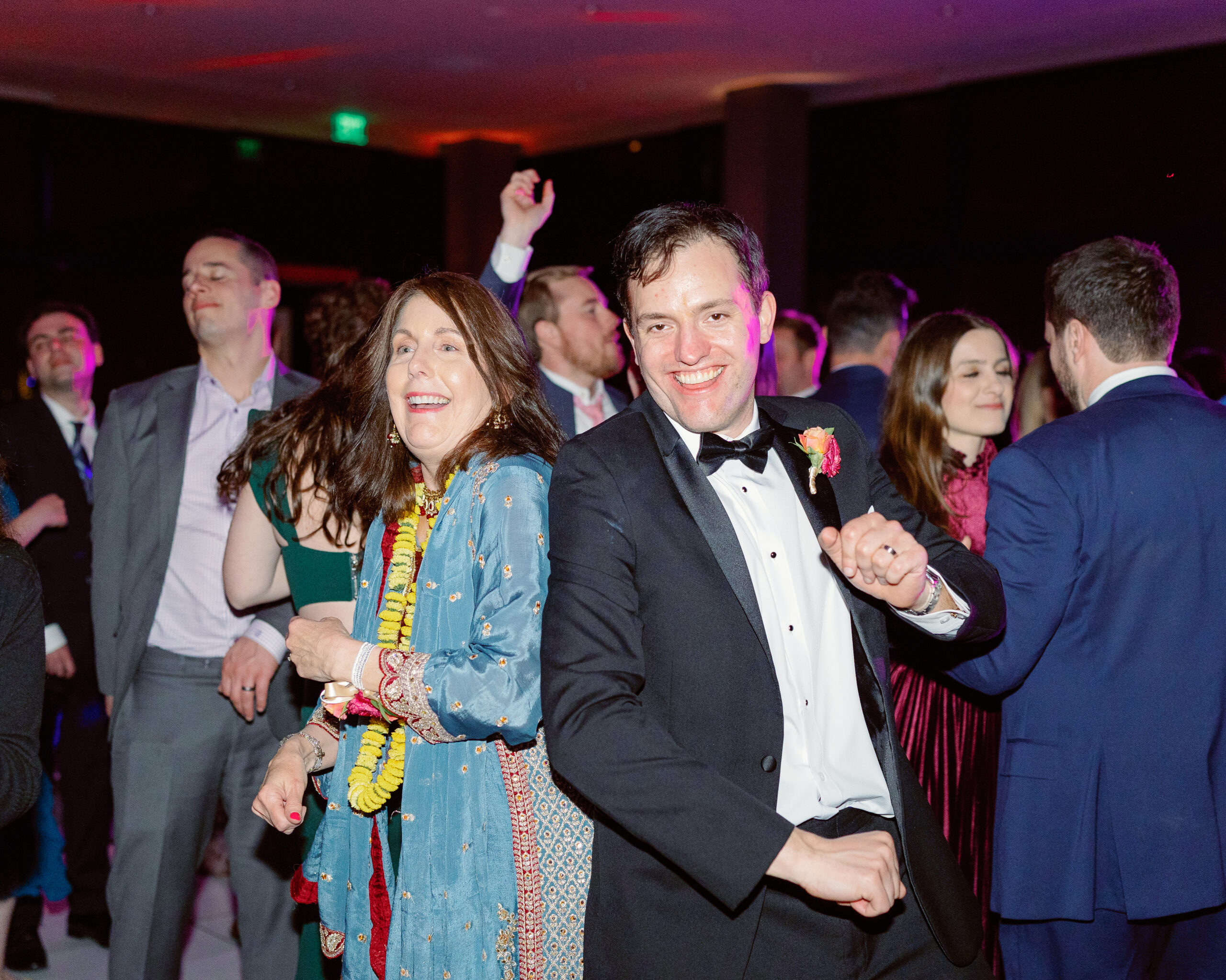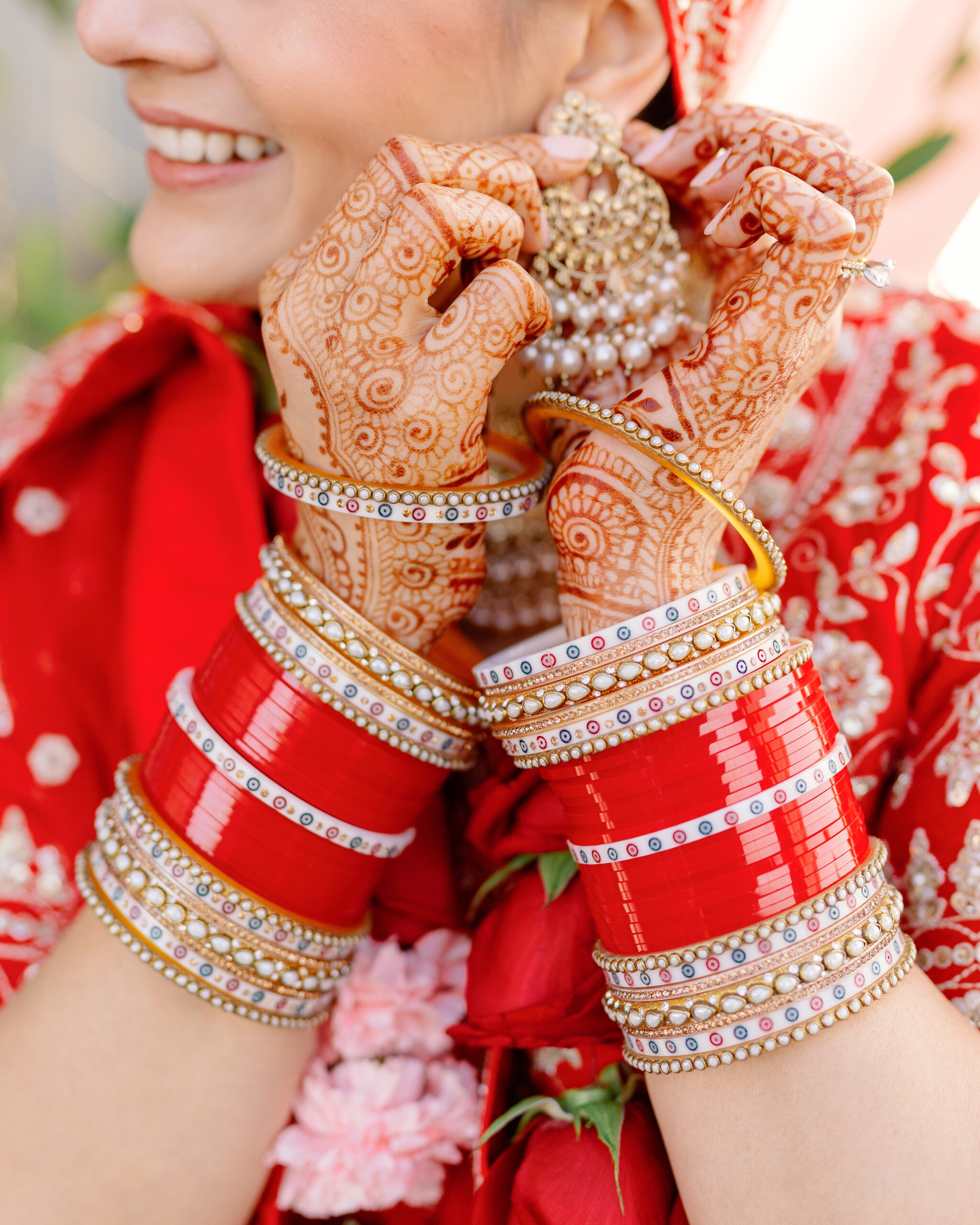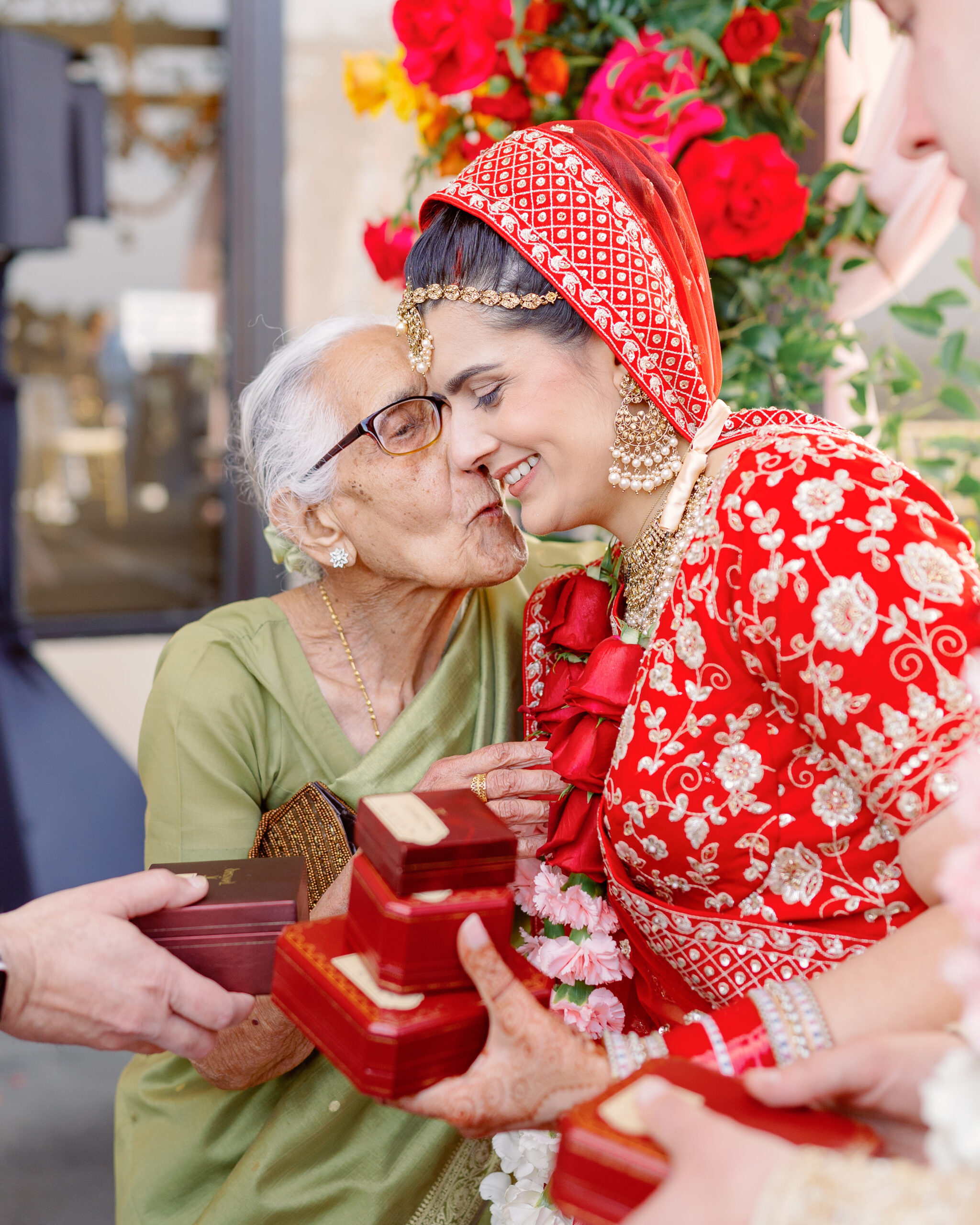 Afterward, they changed into traditional Indian attire and joined their guests at the Marina Del Rey Marriott. The mood shifted from serene to electric as James arrived on horseback for his baraat. Music led the way while friends and family danced in colorful saris. Vijeta, now in her stunning red lehenga, met him with a huge smile as she guided the horse through the crowd — it was one of those moments that felt like pure joy.
