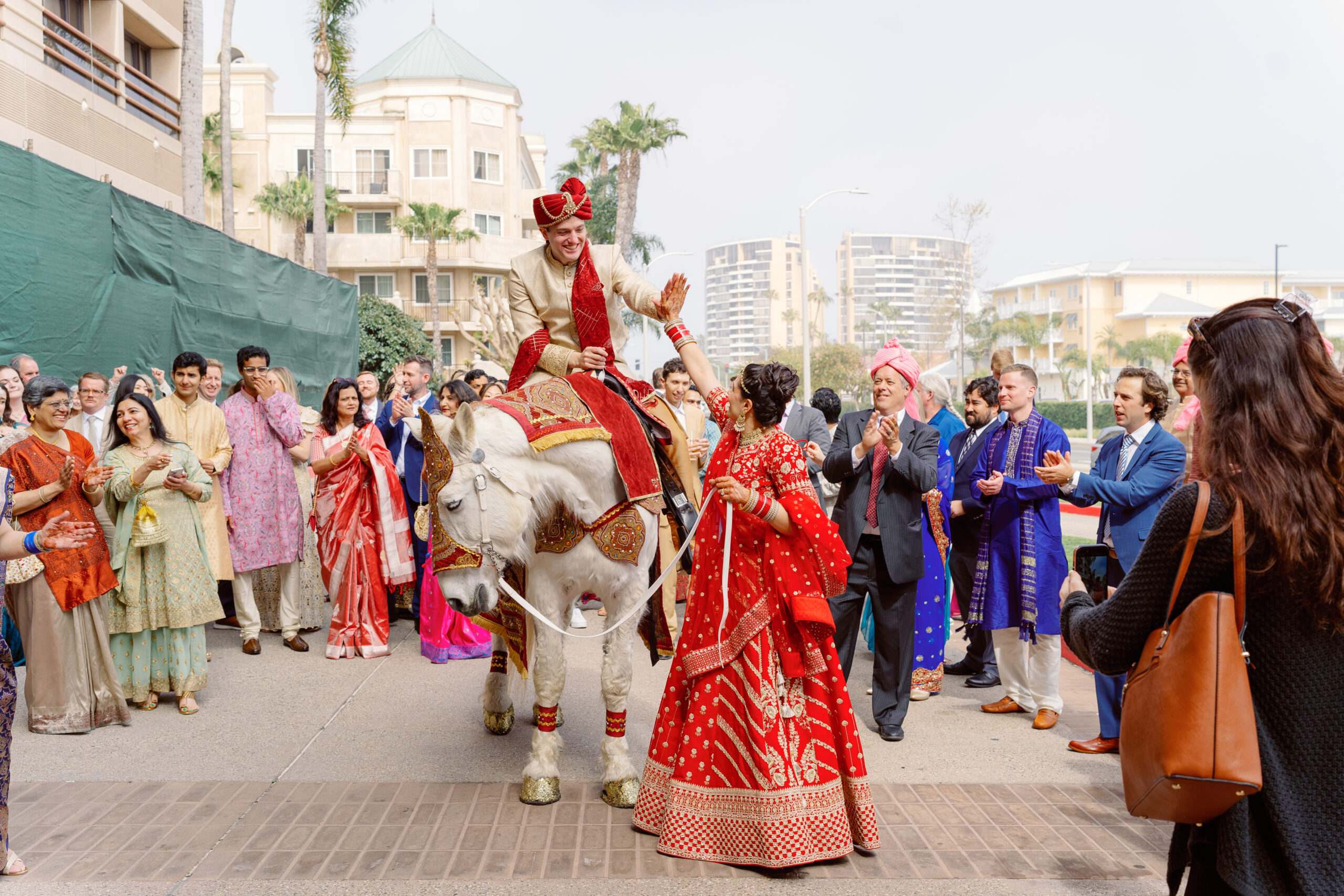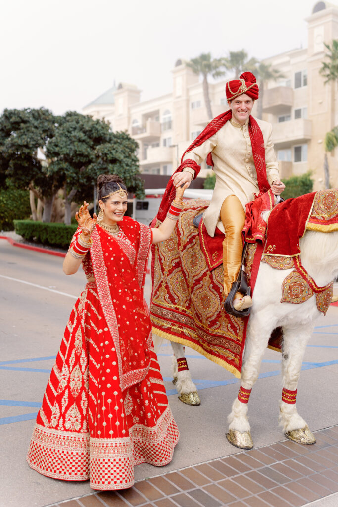 - Vijeta leading James’ horse baraat through downtown Marina Del Rey like an absolute queen.