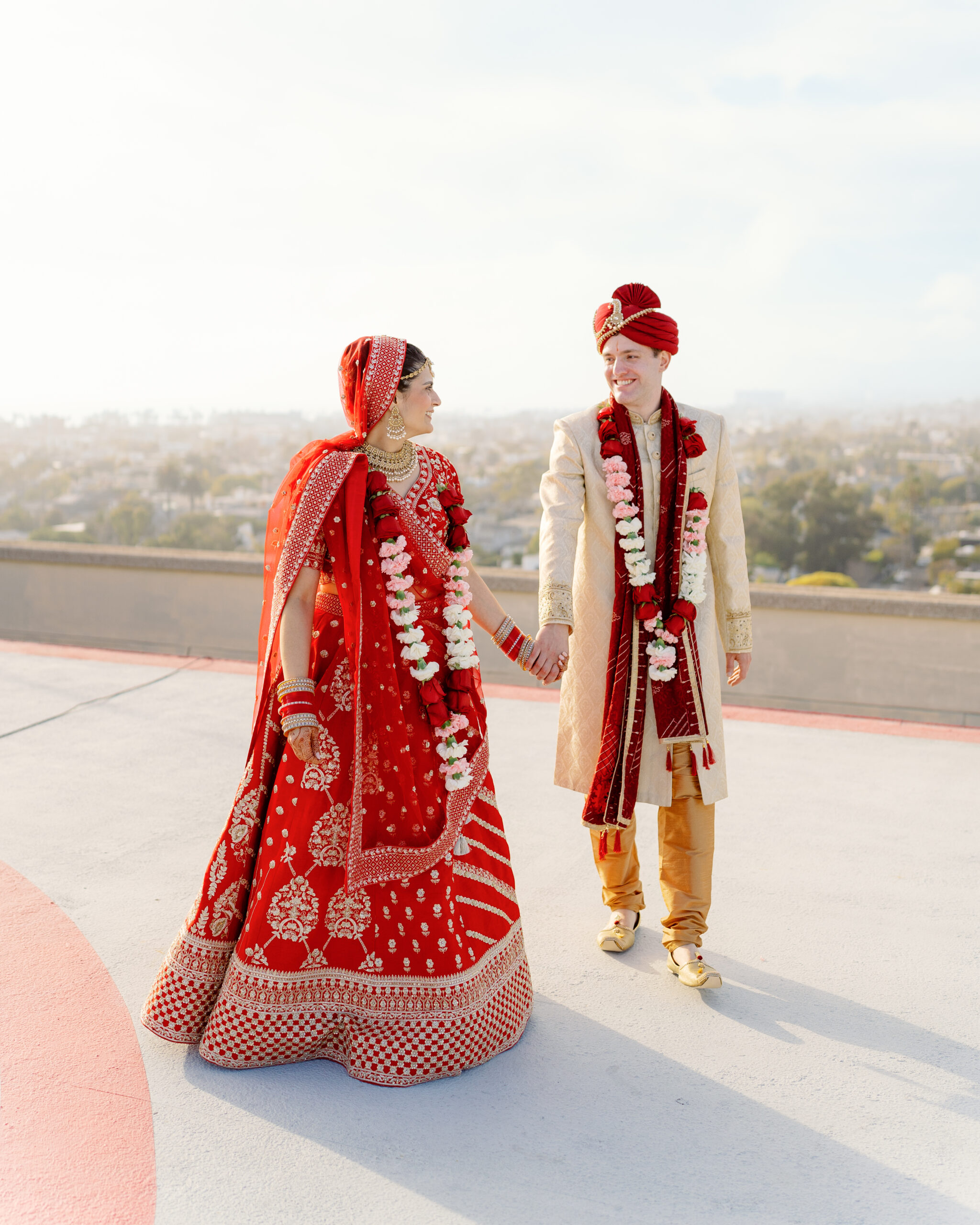 If you’re dreaming of a joyful, multicultural Marina Del Rey hotel wedding, Vijeta and James’ day is the perfect inspiration. Their wedding weekend celebrated two beautiful cultures, starting with a traditional Catholic ceremony and ending with a vibrant Indian celebration on a Marina Del Rey rooftop.