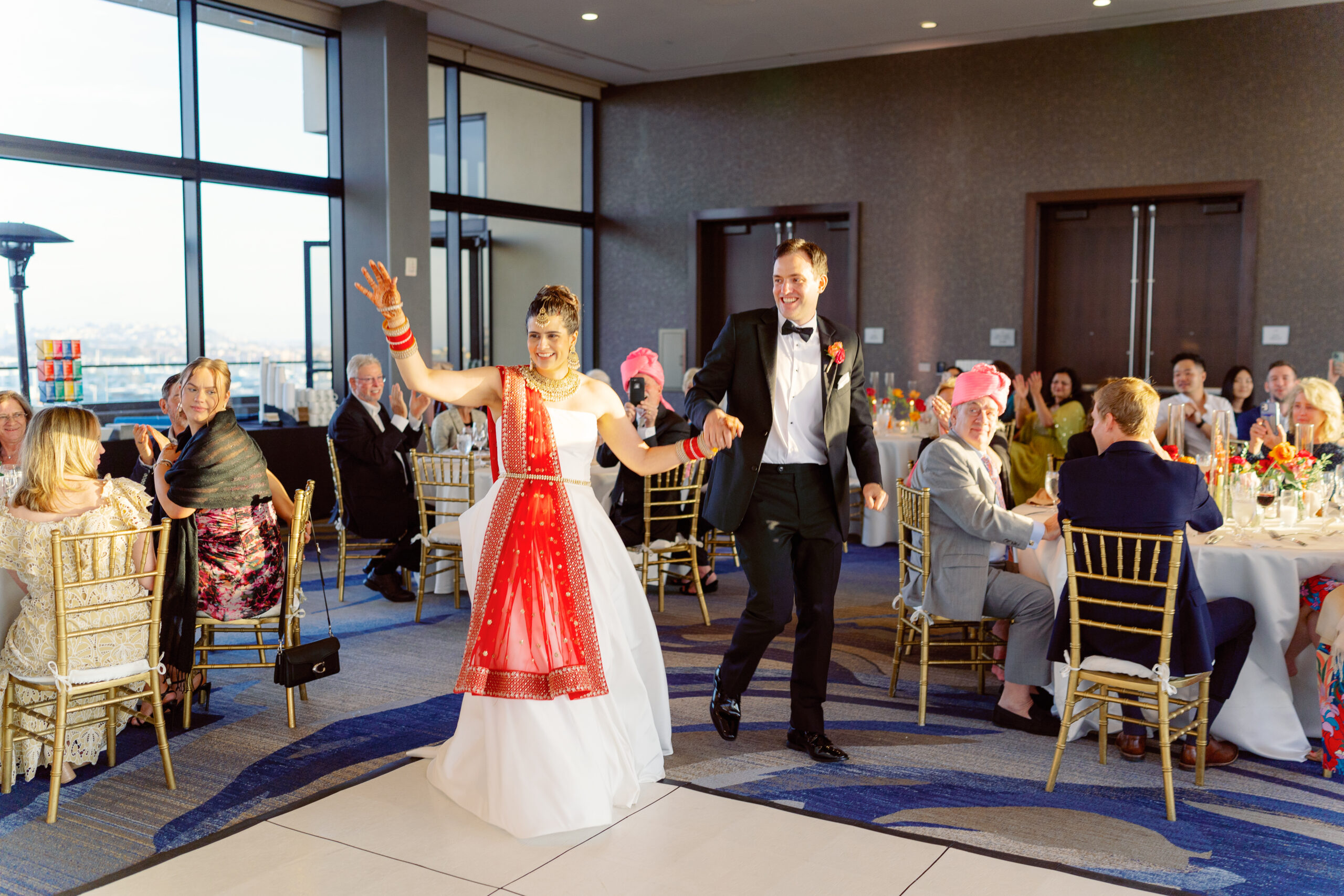 The Marina Del Rey Marriott was the perfect venue to bring both cultures together. Its rooftop views made the mandap feel magical, while the open layout allowed the celebration to flow seamlessly from ceremony to cocktail hour to dance floor.