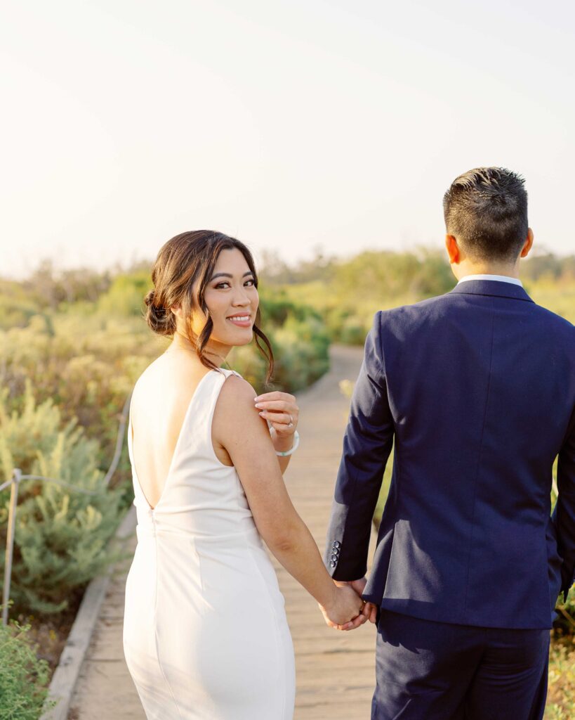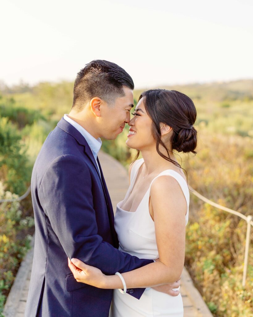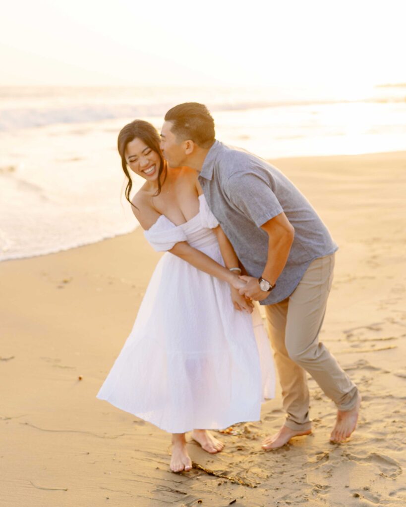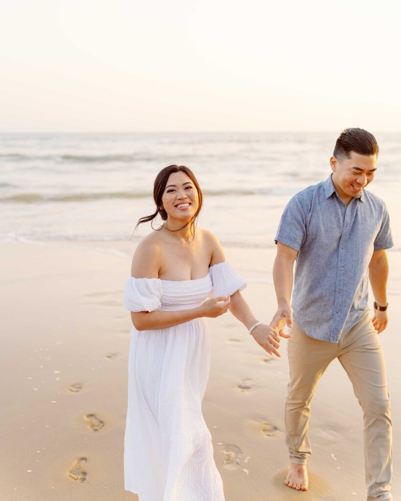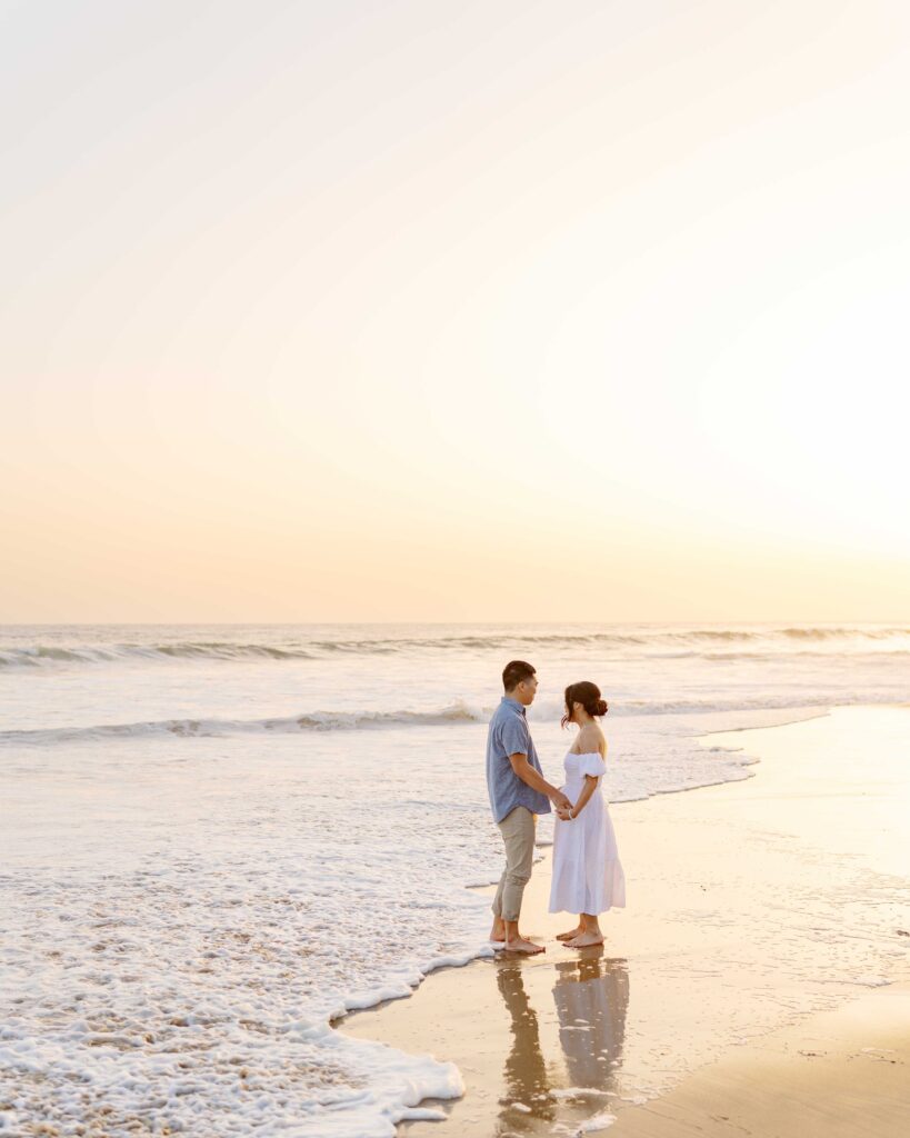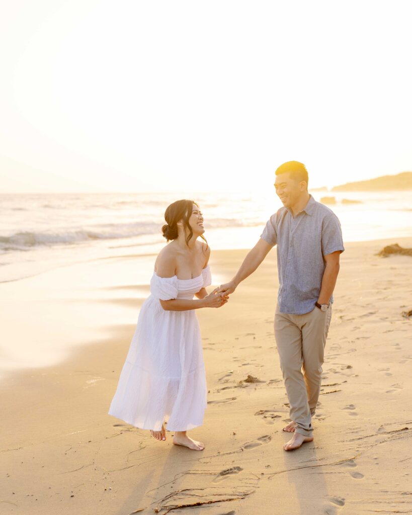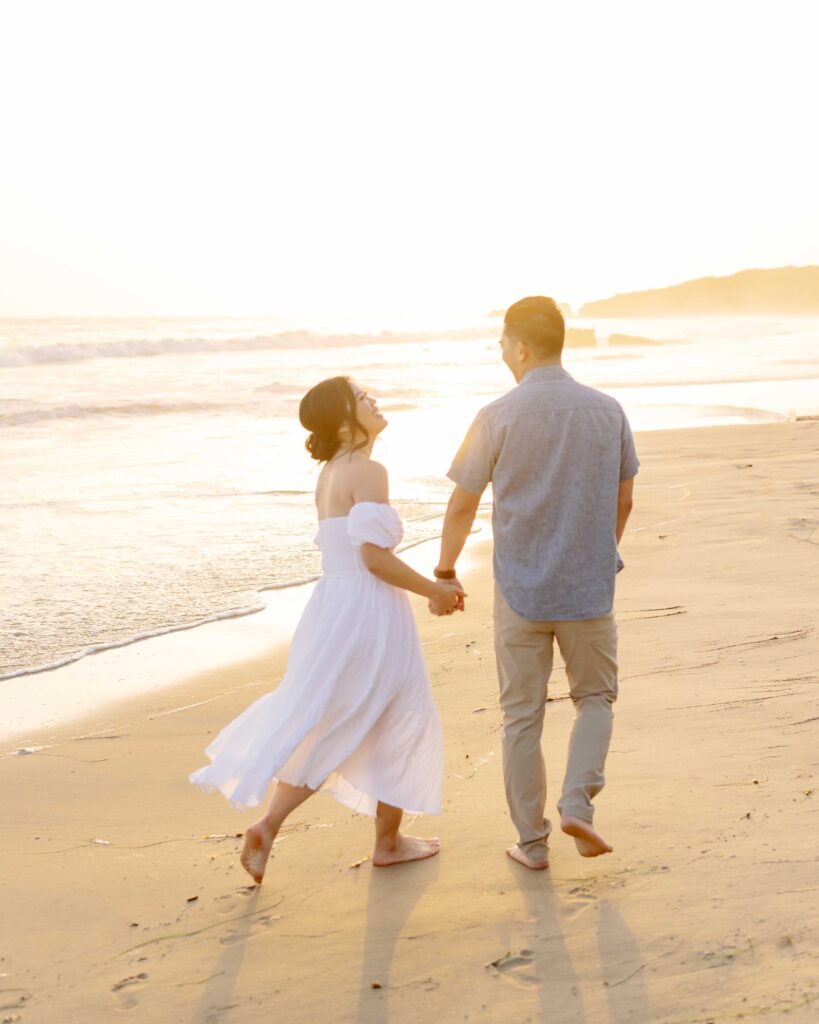 Crystal Cove State Park’s coastline gave us the perfect setting. The sandy beaches and rugged cliffs provided a range of looks for the session. From romantic walks along the shore to candid moments on the boardwalk, every shot felt natural and meaningful. As the sun set, the golden light gave the photos a magical touch, making everything even more beautiful.