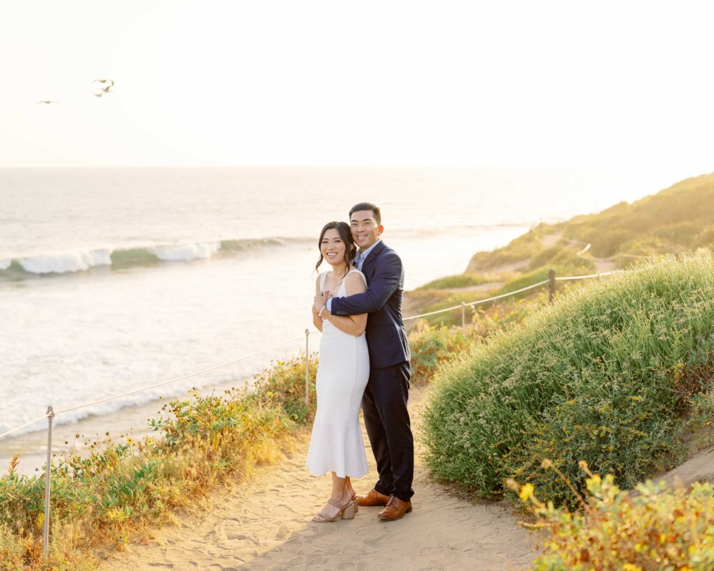If you’re dreaming of beachside engagement photos like Kathy and Ryan’s, Crystal Cove is a fantastic choice. The stunning ocean views and natural beauty offer a perfect backdrop. Whether you want to add personal elements, like a picnic, or keep it simple, the beach setting works for any style.